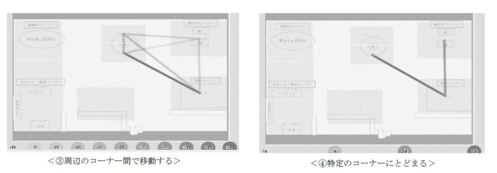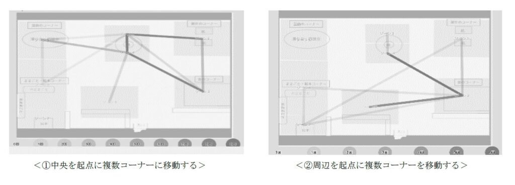出典:小原敏郎・清家弘子(2023)保育・子育て支援活動に参加する学生の動線データの分析 : 学生へのインタビューによる動線データを用いたリフレクションの可能性の探究,保育者養成教育研究(8), 13-23